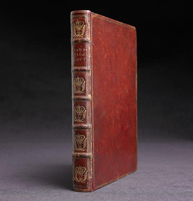 When Charles II was restored to the English throne in 1660, he issued a proclamation calling for two of Milton's books to be publicly burned by the hangman. This is a magnificent association copy, bound in full contemporary red morocco and stamped in gilt with the cipher of Charles II, consisting of crowned Cs and palm leaves in five of the six spine panels. The endpapers also bear a watermark with the arms of Charles II. The royal binding is attributed to Samuel Mearne. The gilt stamped spine reads Paradice Lost, the title as it was entered in the Stationers' Register on 20 August 1667. This copy has the 1667 title page bound, as printed, at the end.