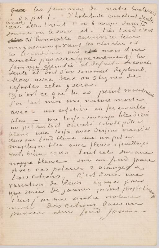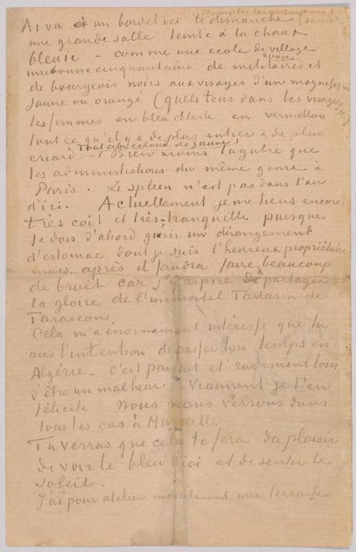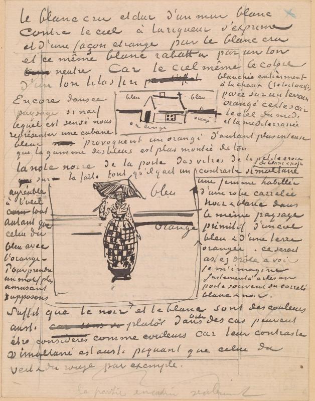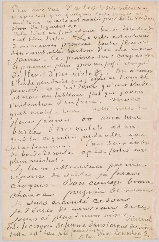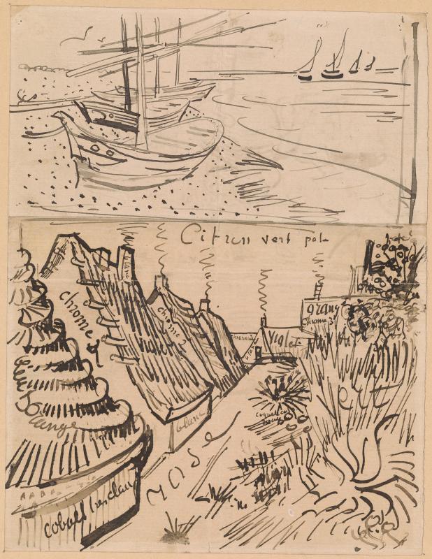 Van Gogh's letters to Bernard reveal the tenor of their relationship. Van Gogh assumed the role of an older, wiser brother, offering praise or criticism of Bernard's paintings, drawings, and poems. At the same time the letters chronicle van Gogh's own struggles, as he reached his artistic maturity in isolation in Arles and St. Rémy. Throughout the letters are no less than twelve sketches by van Gogh meant to provide Bernard with an idea of his work in progress, including studies related to the paintings The Langlois Bridge, Houses at Saintes-Maries-de-la-Mer, Boats on the beach at Saintes-Maries, The Sower, and View of Arles at Sunset.