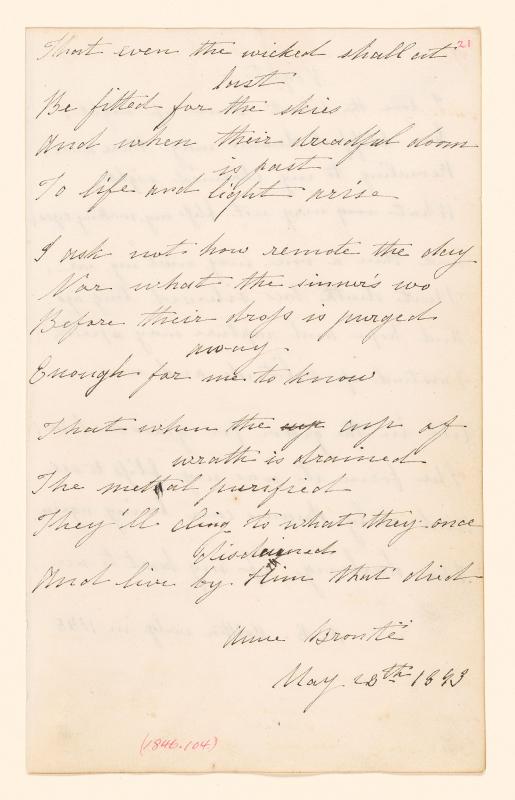 Dated 28 May 1843, when Brontë was twenty-three. First published in Poems (1846) with title “A Word to the ‘Elect.’” Poem 22 in Chitham (1979).