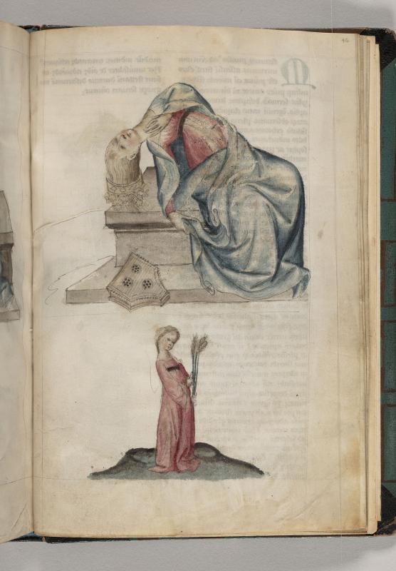 Personification: Planet, Venus (Venus in Dejection), and Zodiac Sign: Virgo -- Venus, crown falling from her head, with left hand on breast, leaning to left, sits on bench, at base of which is psaltery.