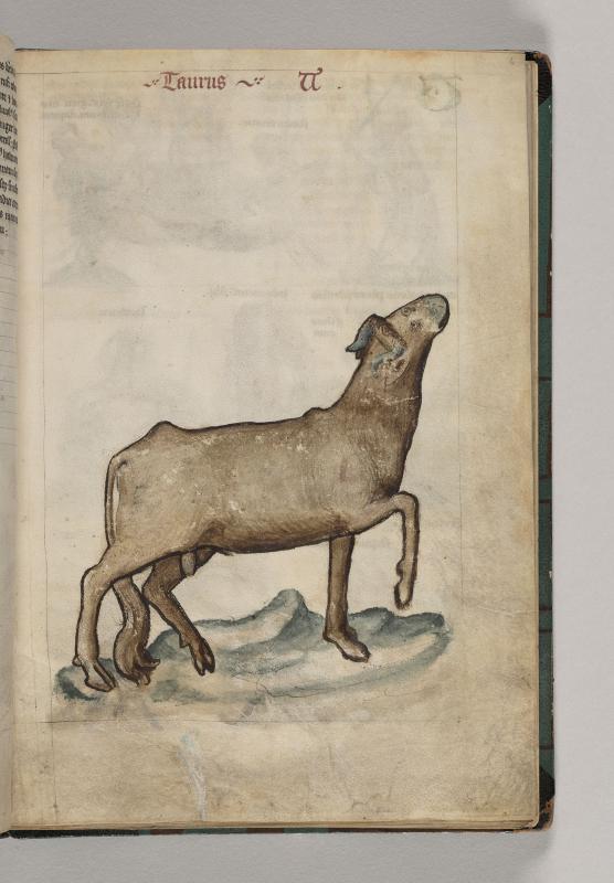 Zodiac Sign: Taurus -- Bull, inscribed TAURUS, shown in profile to right.