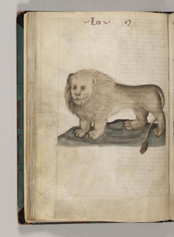 Zodiac Sign: Leo -- Lion, inscribed LEO, with mane, shown in three-quarter profile.