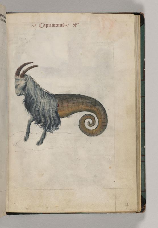 Zodiac Sign: Capricornus -- Hybrid animal, inscribed CAPRICORNUS, with the head and forequarters of goat and spiraled tail of sea monster.