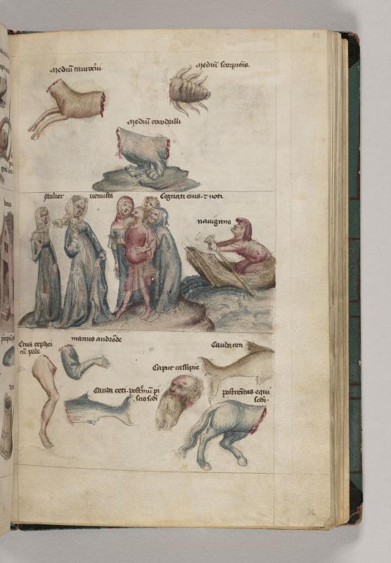 Forequarters of stag, inscribed MEDIUM TAUROCERUI (Astrological Sign: Cervotaurus); body of crocodile, inscribed MEDIUM COCODRILLI (Constellation: Draco); body of scorpion, inscribed MEDIUM SCORPIONIS (Constellation: Scorpio).