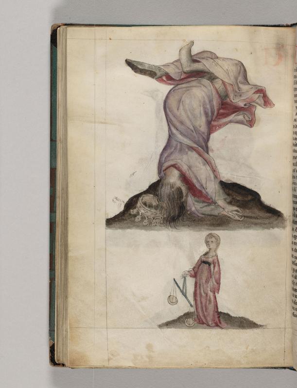 Below is Libra, as woman holding scales.