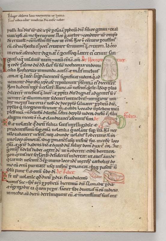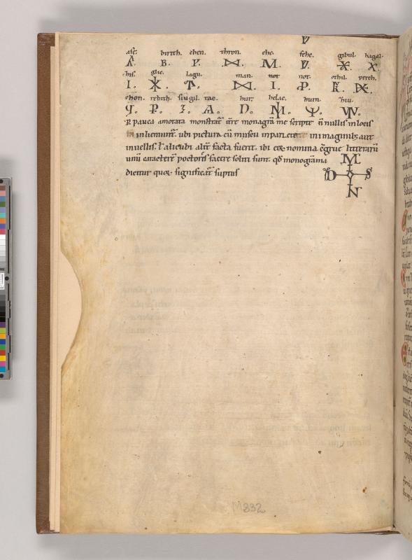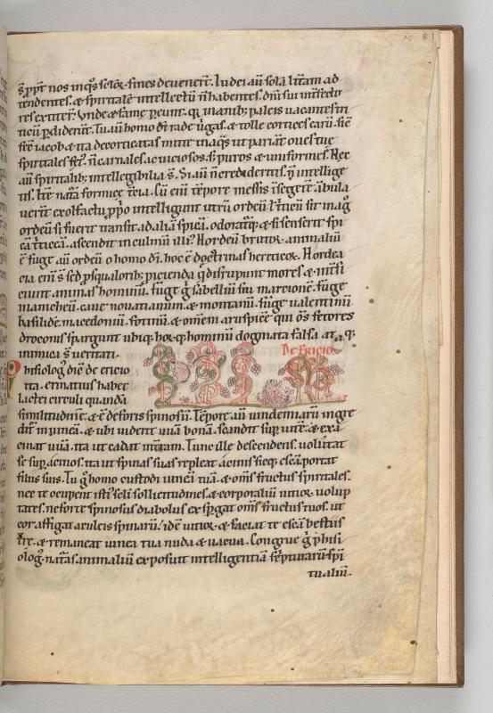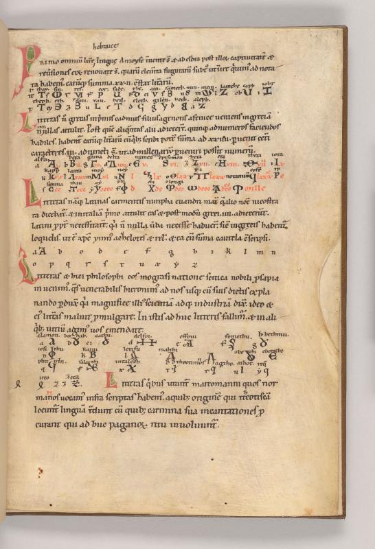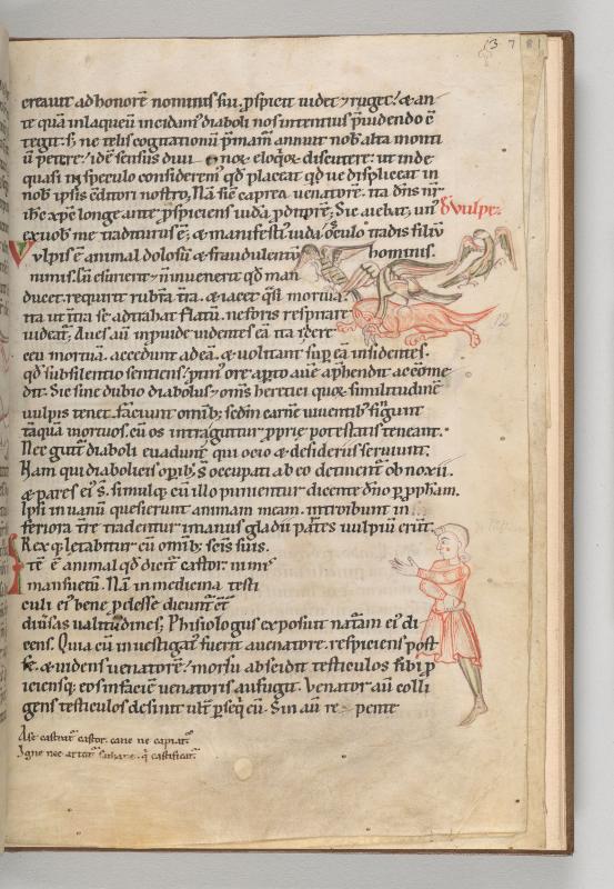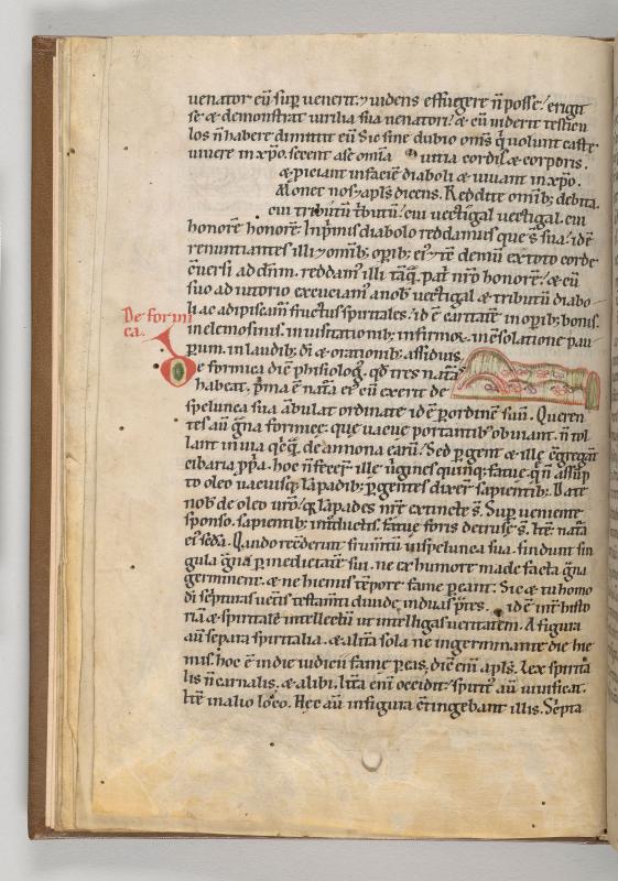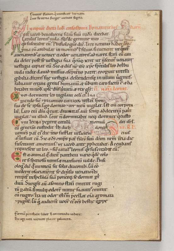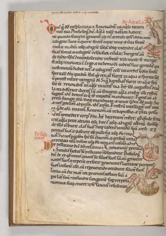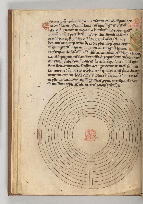 Monastic learning included texts on the natural world. A characteristic example from the important Benedictine monastery at Göttweig, this compilation of animal lore is based on ancient and early medieval sources. Beginning with the lion and ending with the phoenix, the text describes some thirty different animals, both real and imaginary. At upper left is the hydrus, legendary enemy of the crocodile; directly below are sirens, birdlike beasts that prey on sailors. At upper right is the onocentaur, a half-man, half-donkey hybrid; below that are sex-changing hyenas, related to sodomy; and the creature at lower right is a braying onager, symbol of the devil. Added later, rhyming couplets in the margins offer typological and moral interpretations of the animals, of a type also featured in the encyclopedic Concordance of Charity.