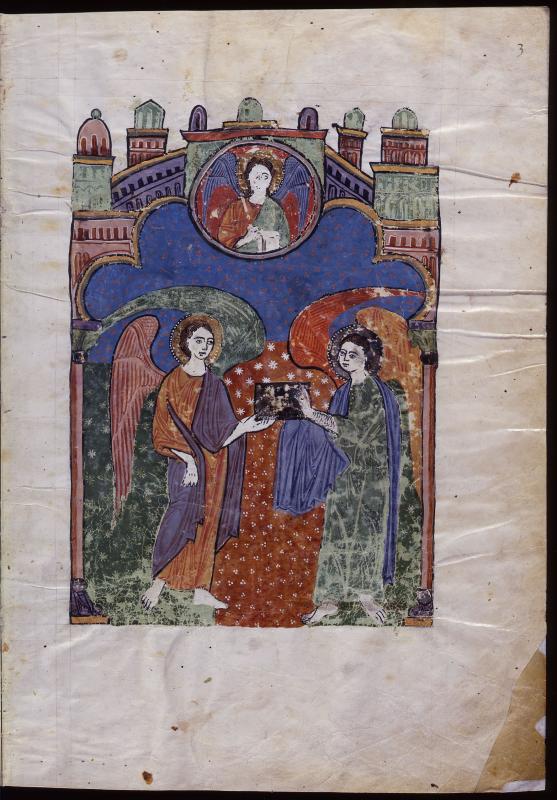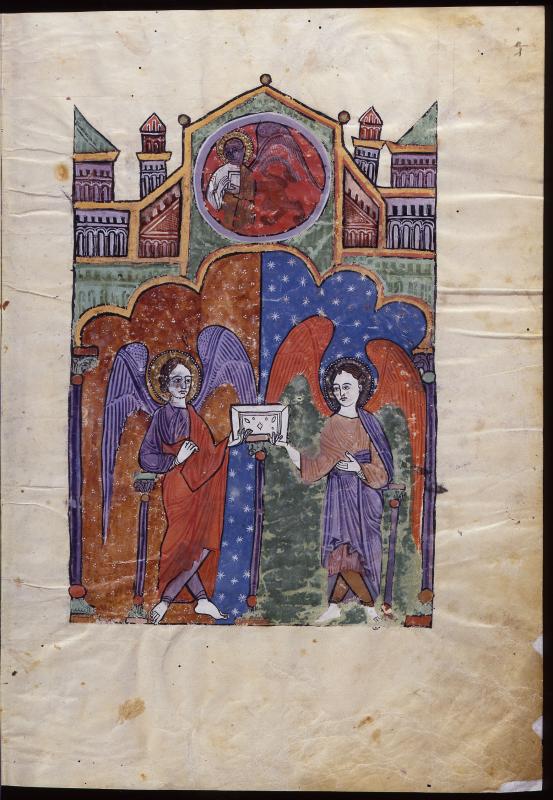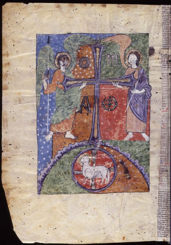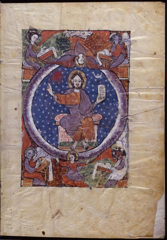 The Apocalypse, or Book of Revelation, is not only the last Book of the New Testament, but its most difficult, puzzling, and terrifying. It provided challenges to medieval illustrators and was the source for a number of popular images, such as Christ in Majesty, the Adoration of the Lamb, and the Madonna of the Apocalypse and contributed to the widespread use of the Evangelists' symbols.