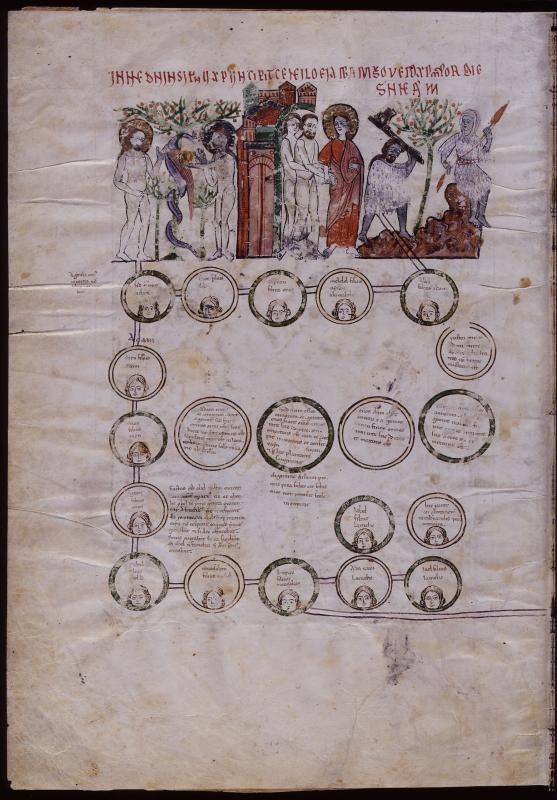 Below, heads in medallions of genealogical tree.