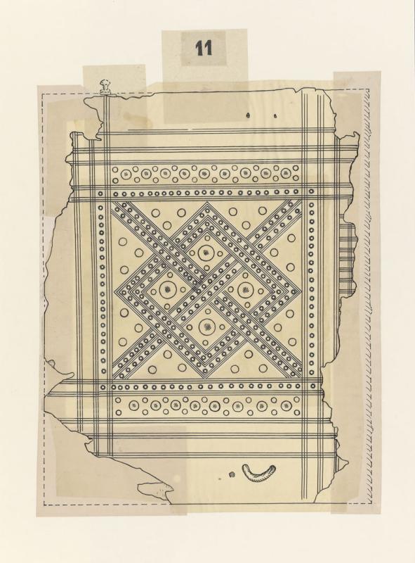 Line drawing of a cover of a Coptic binding, of M.595 (Petersen, part 2, Morgan no. 11)