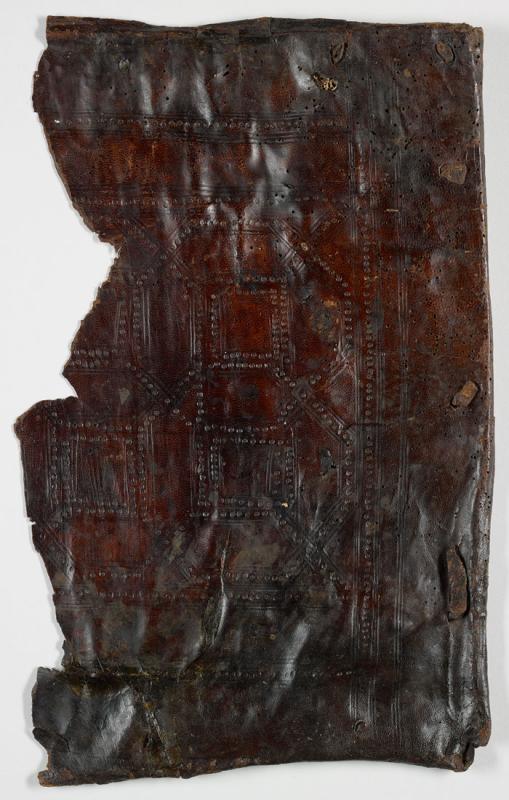 Fragments of the upper and lower covers and a papyrus board scrap of the ancient Coptic binding originally on MS M.596