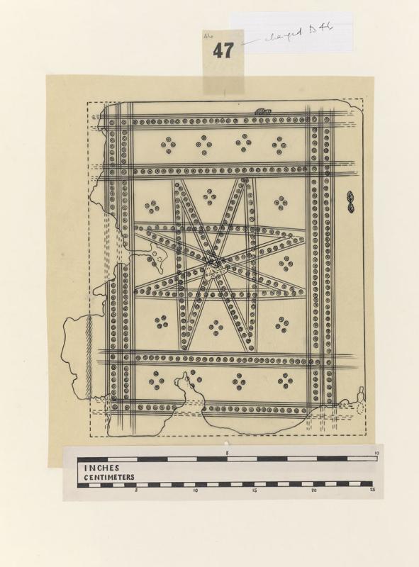 Line drawing of a decorative cover of a Coptic binding, of M.634 bis (Petersen, part 2, Morgan no. 46)