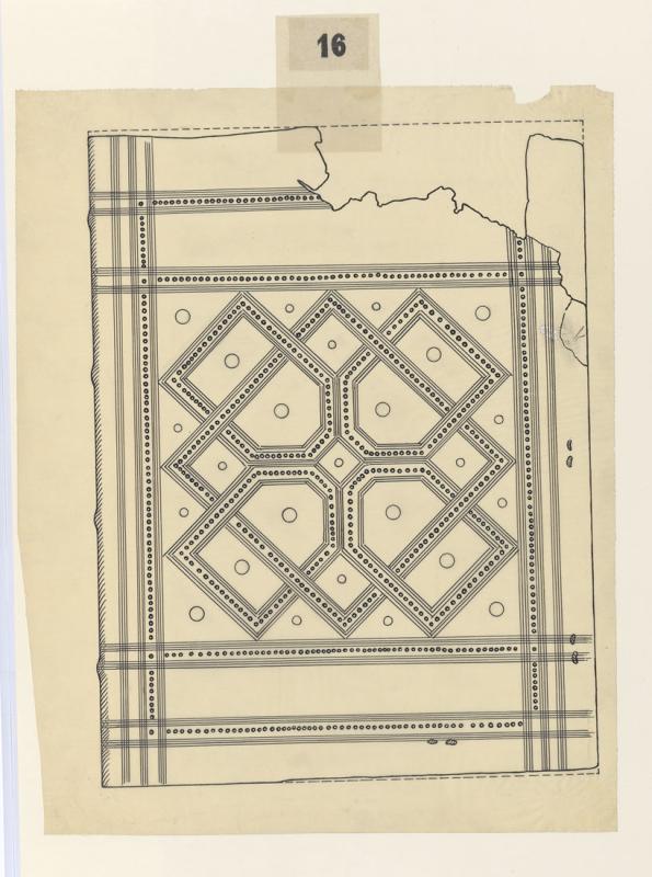 Line drawing of a partial cover of a Coptic binding, of M.580 (Petersen, part 2, Morgan no. 16)
