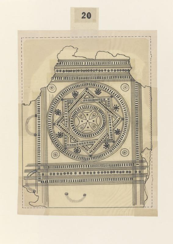 Line drawing of a partial cover of a Coptic binding, of M.585 (Petersen, part 2, Morgan no. 20)