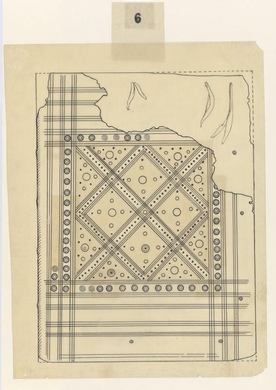 Line drawing of a Coptic binding on a synaxary lections, of M.586 (Petersen, part 2, Morgan no. 6)