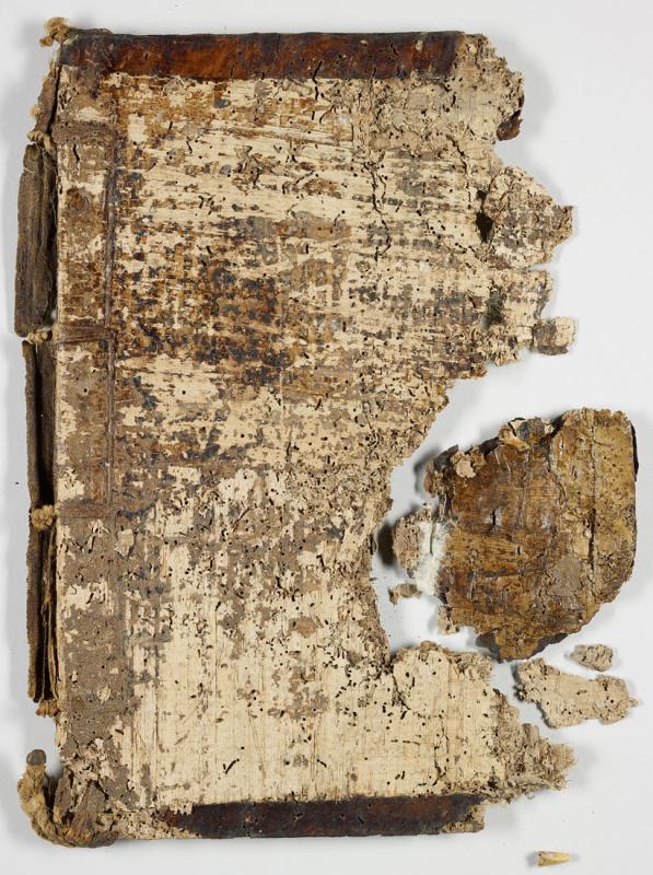 Fragments of the ancient Coptic binding originally on MS M.593