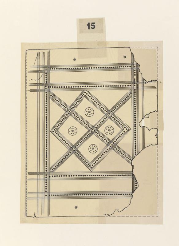 Line drawing of a partial cover of a Coptic binding, of M.594 (Petersen, part 2, Morgan no. 15)