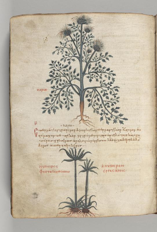 2) Galingale (Cyperus rotundus), inscribed kypairos.