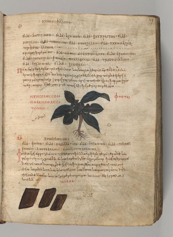 1) Hound's Tongue (Cynoglossum columnae), inscribed kynoglosson;