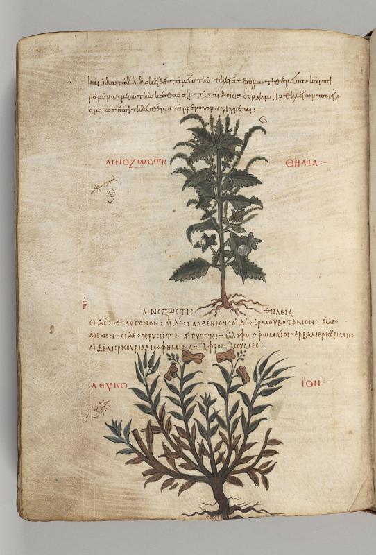 1) Mercury (Mercurialis annua), inscribed linozostis thelia;