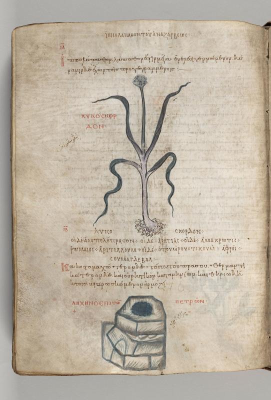 1) Wild Leek (Allium ampeloprasum), inscribed lykoskordon;