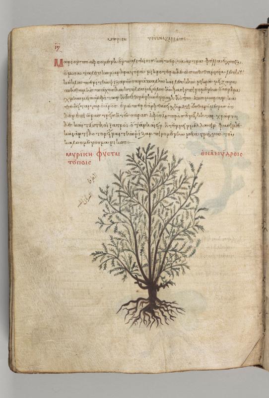 Tamarisk (Tamarix), inscribed myrike.