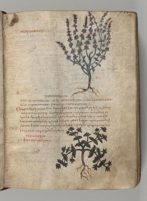 1) Field Basil (Zizyphora capitata), inscribed polyknemon;