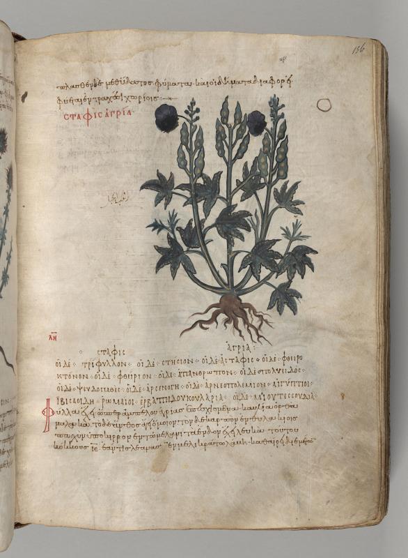 Stavesacre (Delphinium staphisagria), inscribed staphis agria.