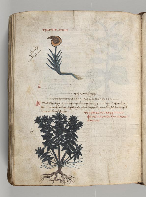 2) Female Spurge (Euphorbia), inscribed tithymallos myrtinites.