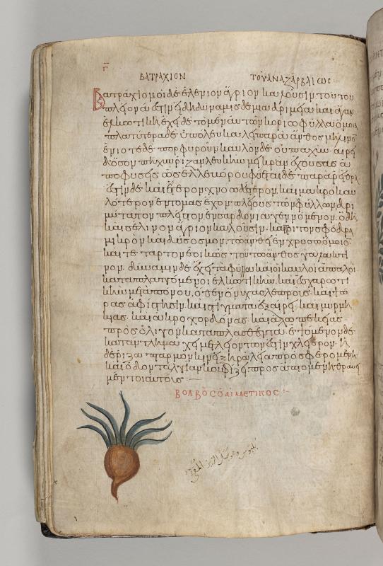 Bulb of the Tazetta Narcissus (Narcissus tazetta), inscribed bolbos aimetikos.
