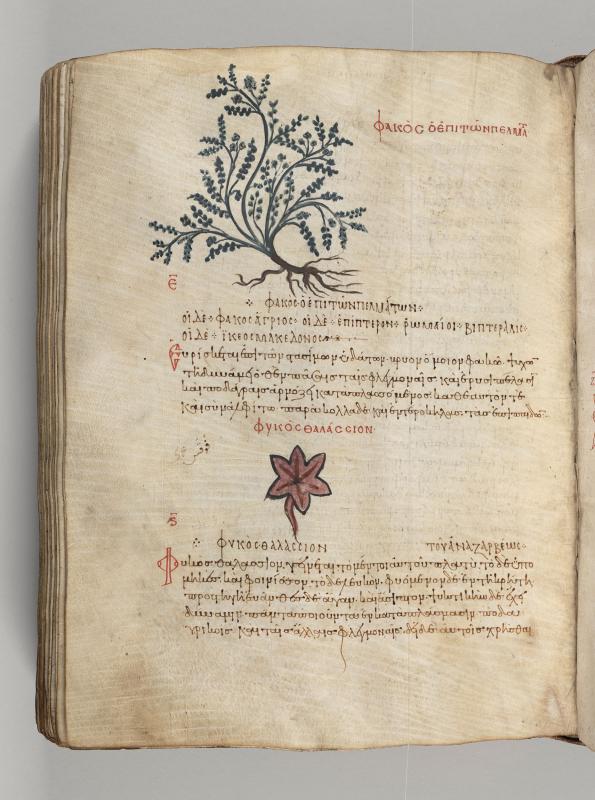 2) Seaweed (Posidonia oceanica), inscribed phykos thalassion.