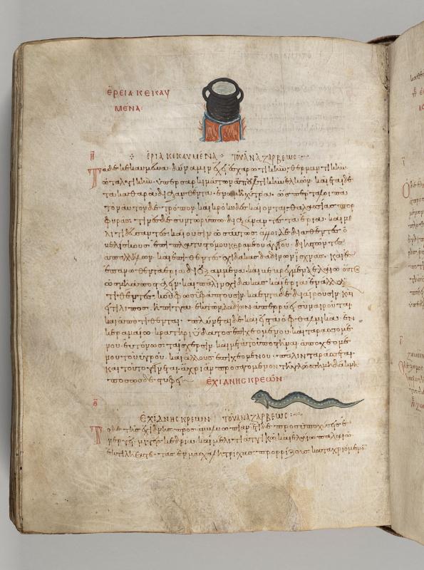 1) Cauldron containing wool on fire, representing burned wool, inscribed eria kekaumena;