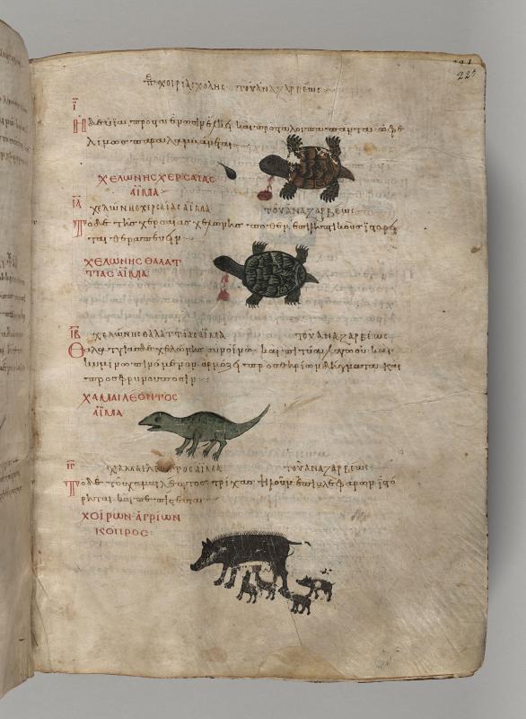 "1) Tortoise, inscribed ""blood of the land tortoise"" (Greek);