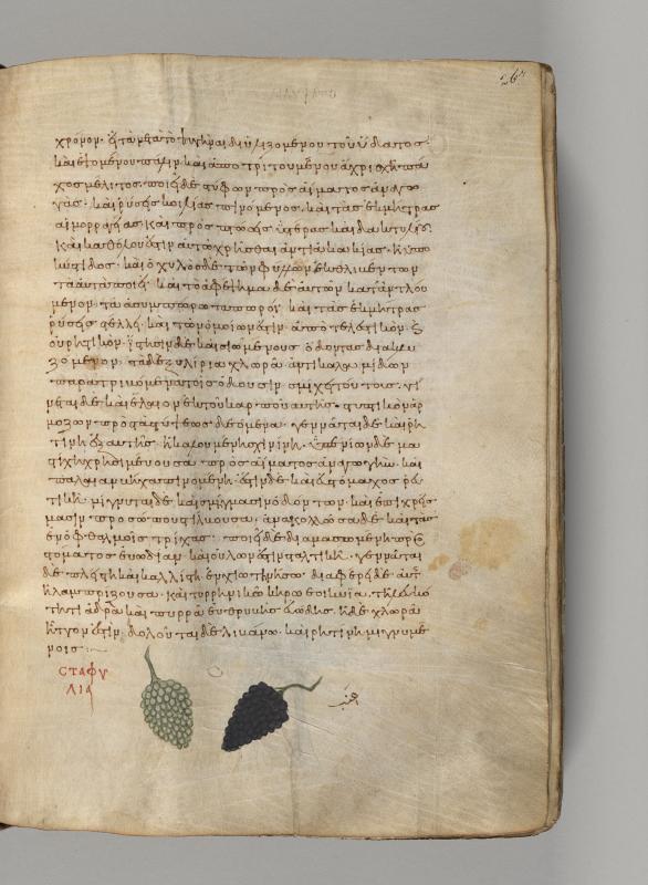 Two grape clusters, inscribed staphylia.