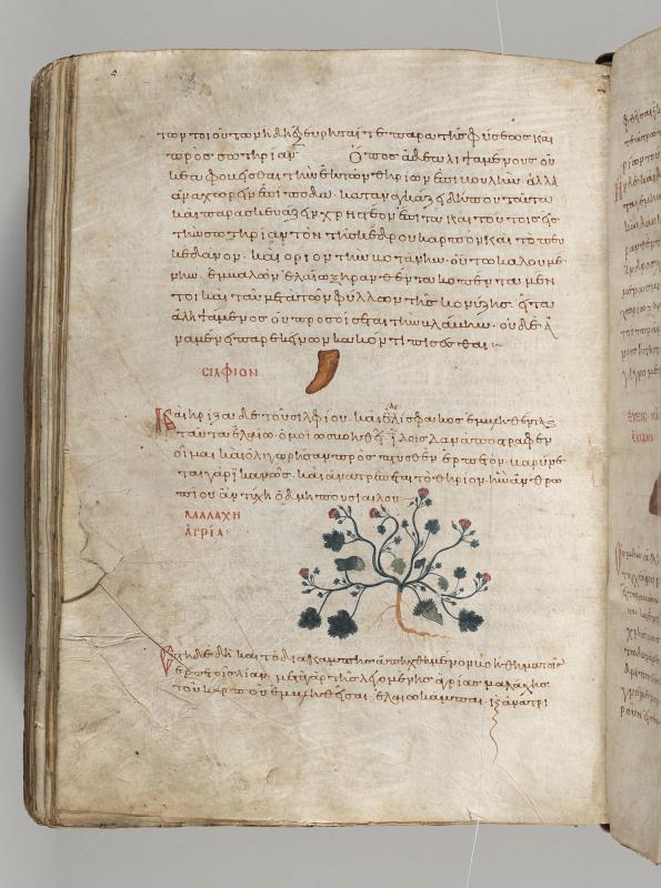 2) Mallow (Malva silvestris), inscribed malache (for maloche) agria.