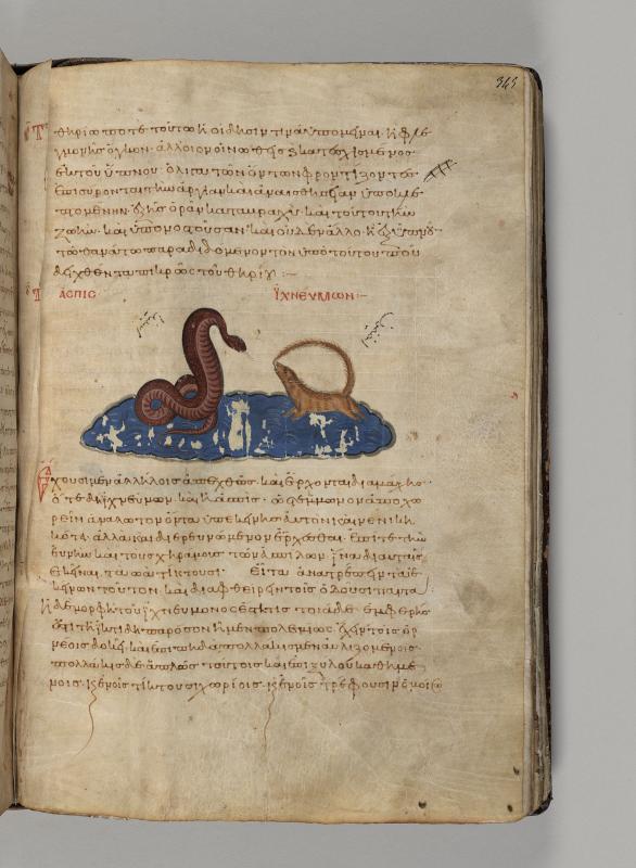 Cobra confronting mongoose, on water, inscribed aspis and ichneumon.