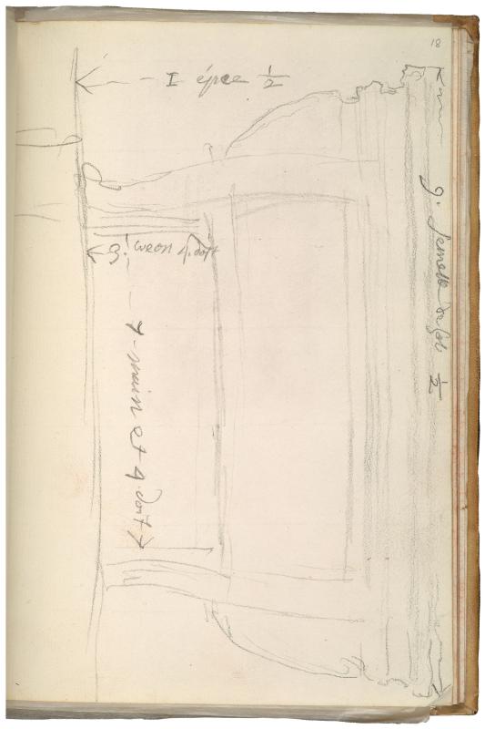 Sarcophagus, with Measurements (after the Antique). Inscribed by the artist, in black chalk, at top, 9 semelle du sol 1/2; at bottom (from left to right) I épee 1/2, 3 creon 4 doits, and 7 main et 4 doit.