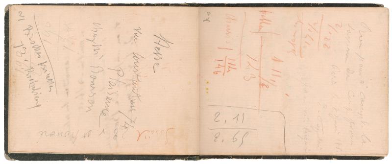 This is the only surviving personal notebook of the French artist Édouard Manet (1832–1883). He used it in the early 1860s, when he was between the ages of twenty-eight and thirty, documenting aspects of his everyday life and work in the two years leading up to his most significant contributions to modern painting, Le Déjeuner sur l’herbe and Olympia. He likely carried the notebook in his pocket and extracted it to record the names and addresses of models, publishers, framers, and collectors, jotting down accounts and sums owed to him, and making pencil sketches for works in progress, including Children in the Tuileries Gardens.