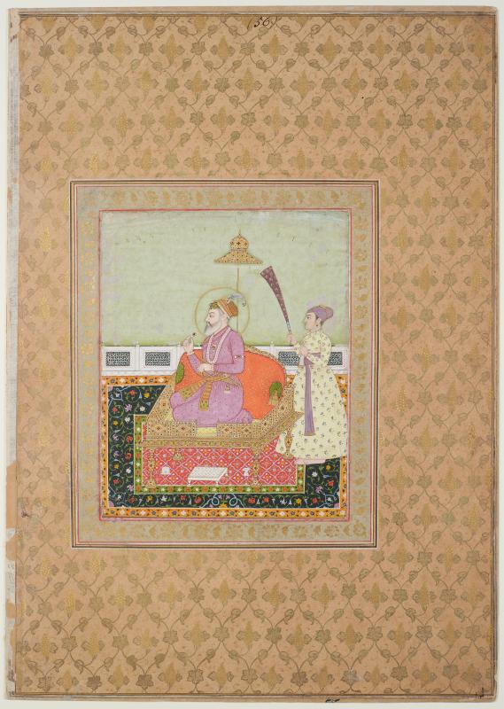 Shāh Jahān seated on a jeweled throne
