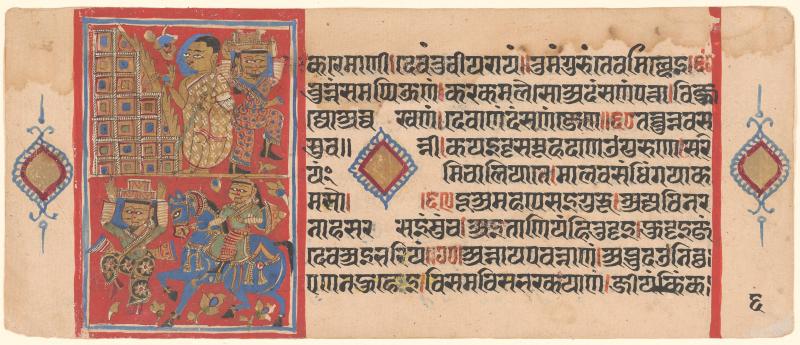 Conversion of bricks to gold by Kālaka, a folio from a Kālakācāryakathānaka manuscript