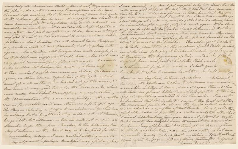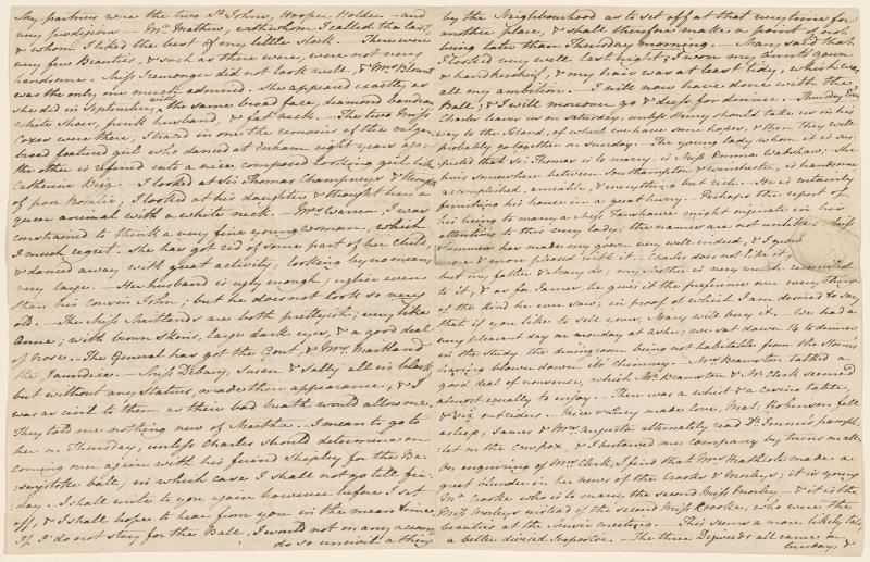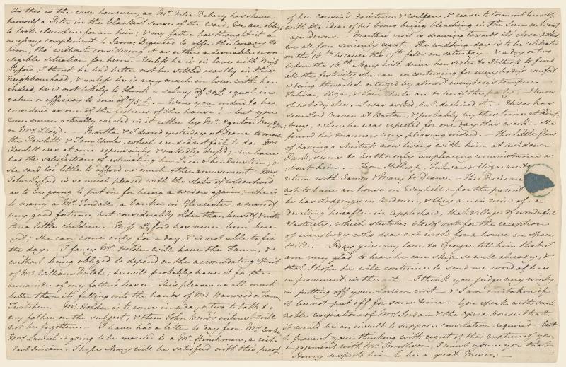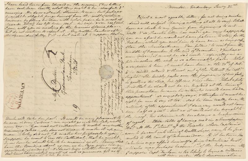 - Jane Austen (1775–1817), Autograph letter to Cassandra Austen, Steventon, January 3–5, 1801. The Morgan Library & Museum, MA 977.9.