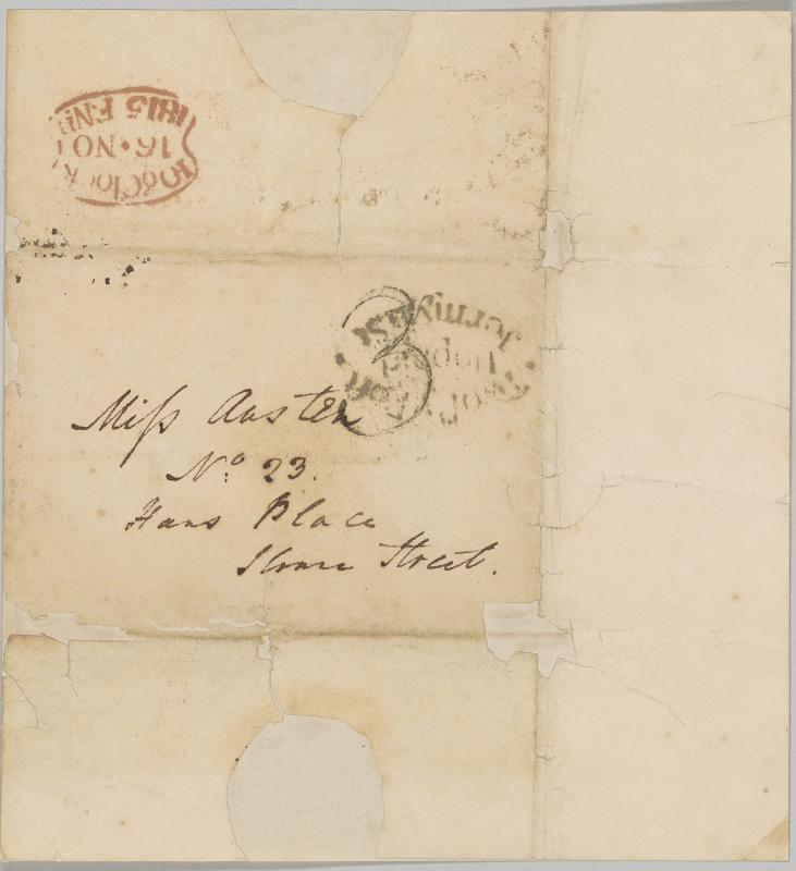 From James Stanier Clarke to Jane Austen, November 16, 1815, address sheet