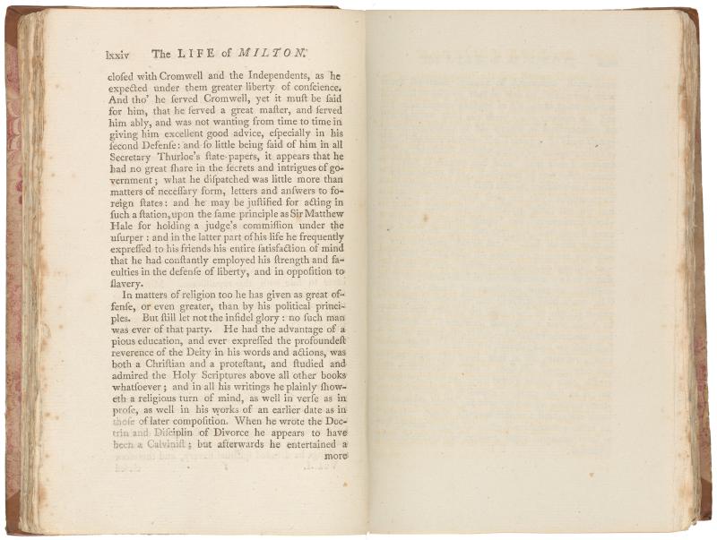 100. PML 966, Vol. 1, part 1, The life of Milton, p. lxxiv–Leaf bound in following Life of Milton, p. 74, recto