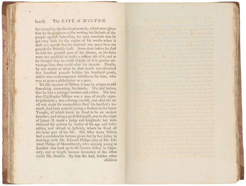 104. PML 966, Vol. 1, part 1, The life of Milton, p. lxxviii–Leaf bound in following Life of Milton, p. 78, recto