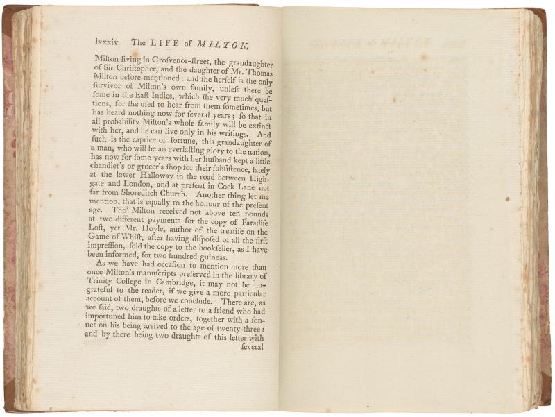 110. PML 966, Vol. 1, part 1, The life of Milton, p. lxxxiv–Leaf bound in following Life of Milton, p. 84, recto