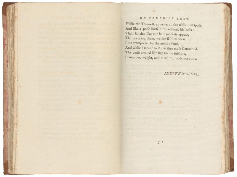 117. PML 966, Vol. 1, part 1, Leaf bound in following On Paradise Lost, p. [2]–On Paradise Lost, p. [3], verso