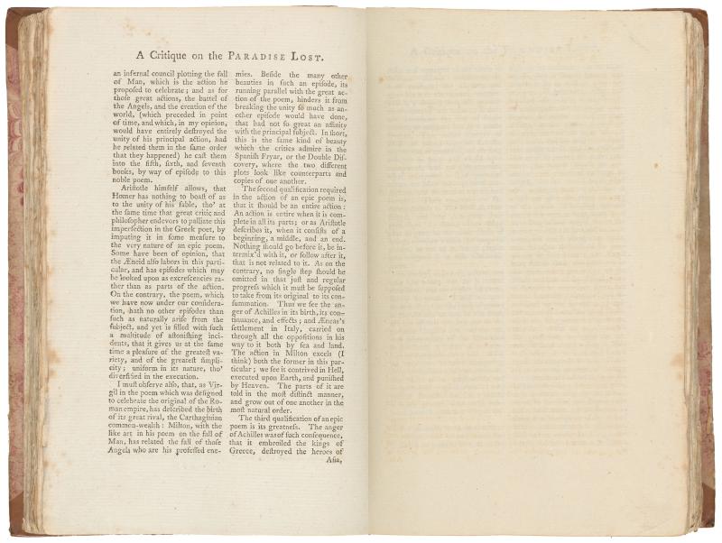 Vol 1, part 1, A Critique on the Paradise Lost, p [2]–Leaf bound in following A Critique on the Paradise Lost, p [2], recto, P