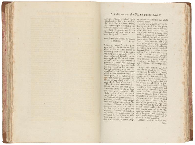 Vol 1, part 1, Leaf bound in following A Critique on the Paradise Lost, p [4], verso–A Critique on the Paradise Lost, p [5], P