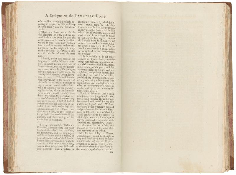 Vol 1, part 1, A Critique on the Paradise Lost, p [14]–Leaf bound in following A Critique on the Paradise Lost, p [14], recto,