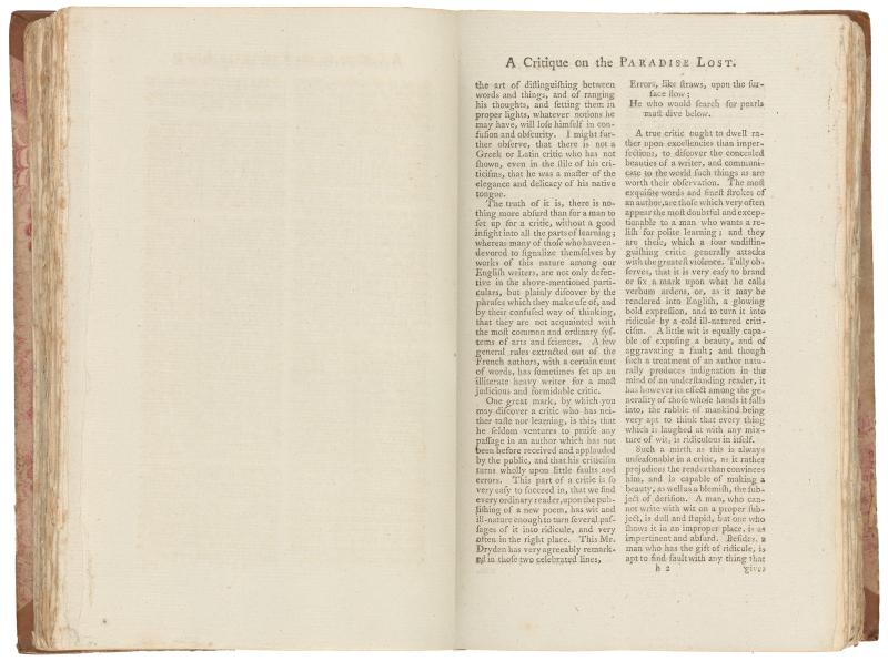 Vol 1, part 1, Leaf bound in following A Critique on the Paradise Lost, p [14], verso–A Critique on the Paradise Lost, p [15],