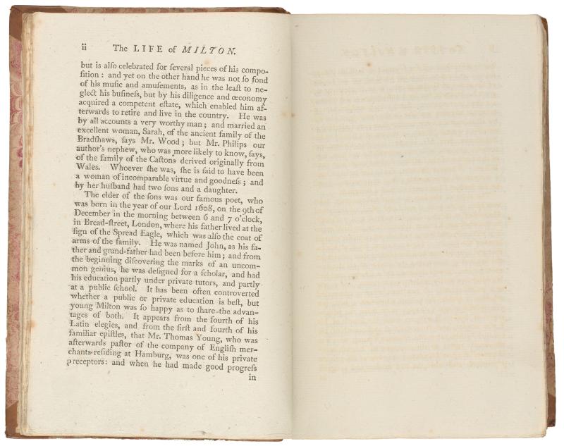 028. PML 966, Vol. 1, part 1, The life of Milton, p. ii–Leaf bound in following Life of Milton, p. ii, recto